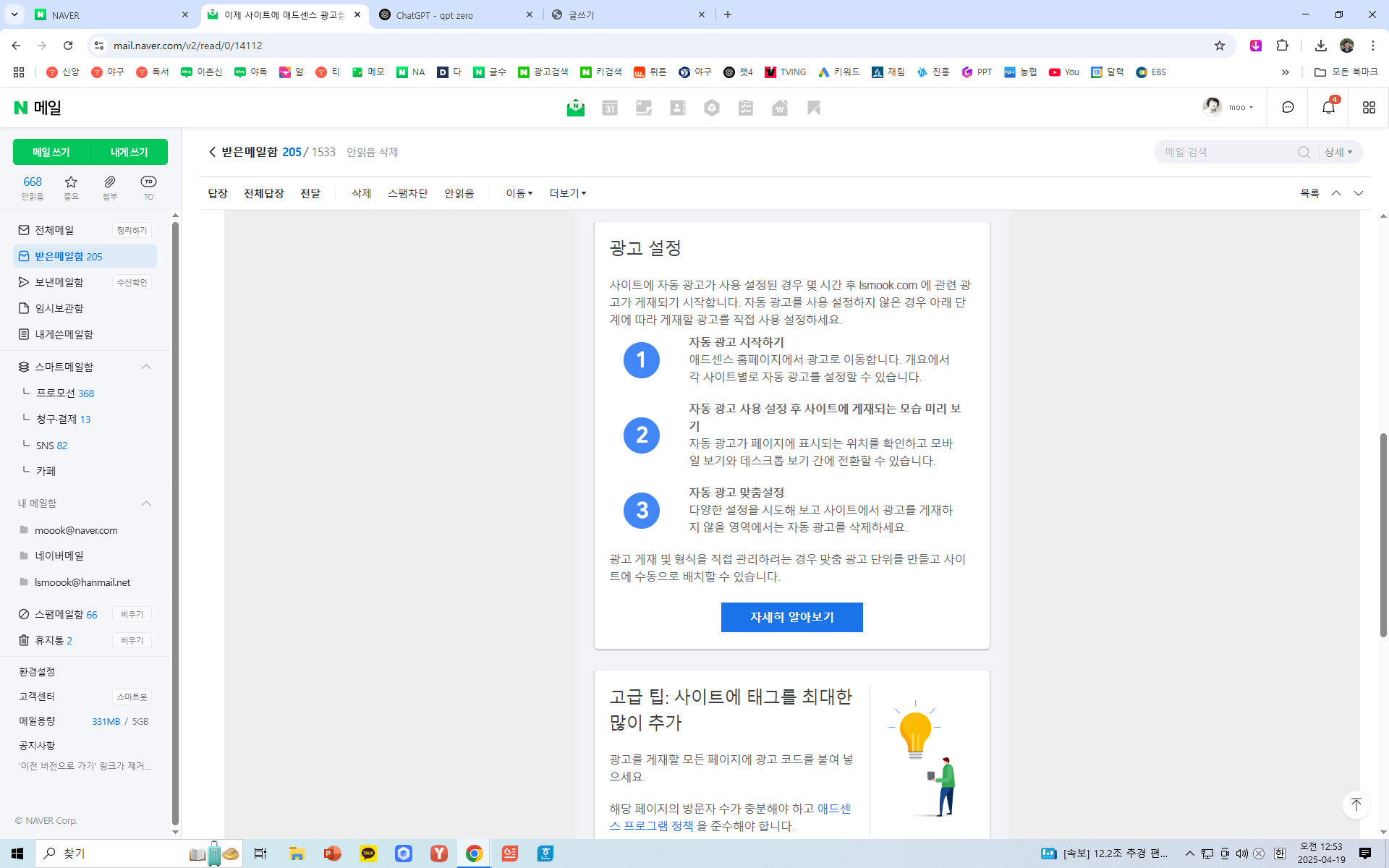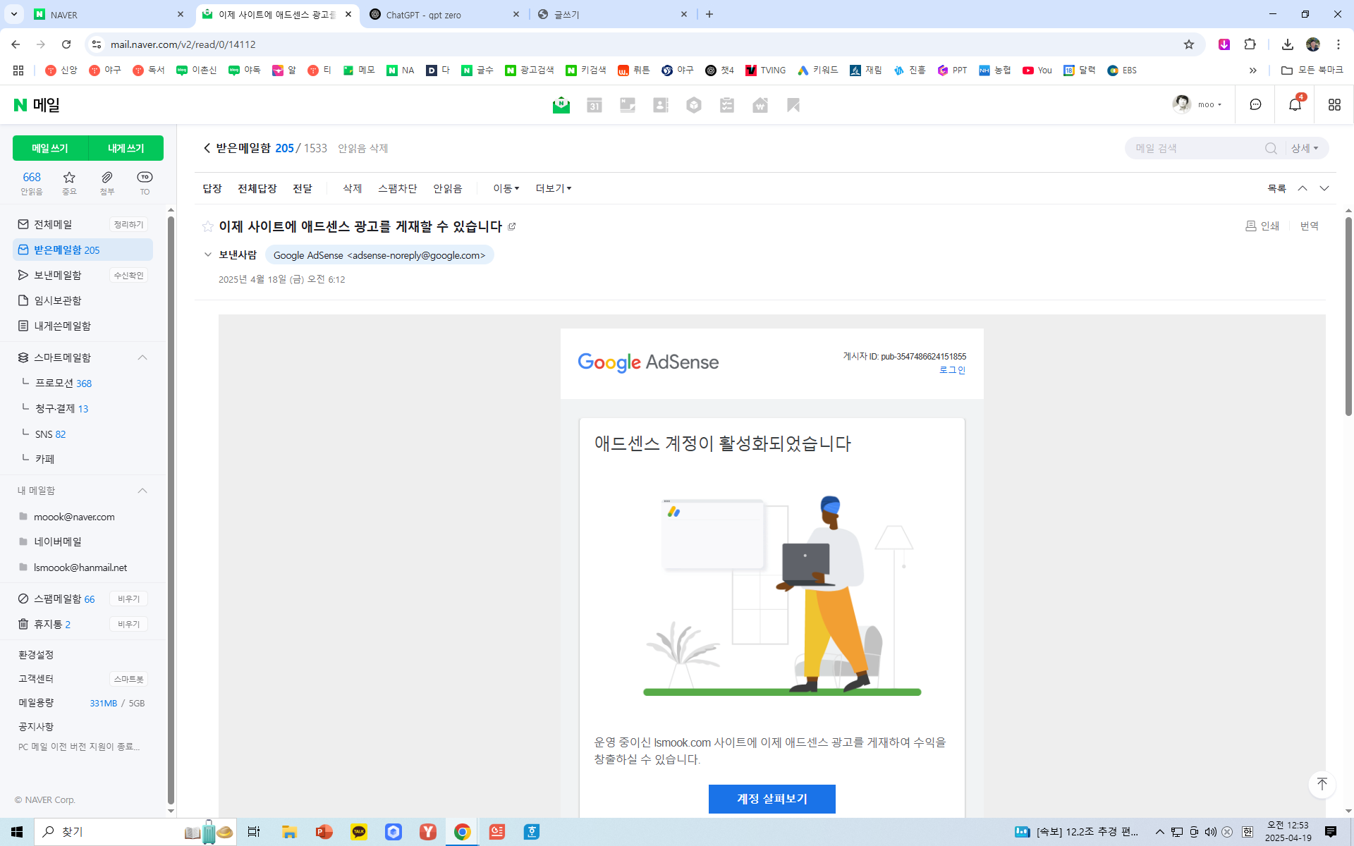 어제 애드센스에서 이메일이 도착하였다. 자만심은 아니지만 지난 8년 여간 블로그를 운영해왔기에 애드센스의 승인이 날 것은 장담했지만 날이 갈수록 답답해서 3일 전에 승인이 난 것을 어떻게 아는지 찾아 보니 애드센스 홈페이지에 가면 알 수 있다고 했다. 그러나 없었고 아백에서는 우편으로 온다고 했으니 답답하지만 기다릴 수밖에 없는노릇이다. 승인 신청한지 거의 2주 만에 네이버 이메일로 어제 아침에 승인 됐다고 연락이 온 것이다.
